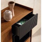 Aparador alto de diseño contemporáneo que combina diseño modular y funcionalidad en una pieza robusta y equilibrada, ideal para espacios modernos. Su estructura ofrece un almacenamiento versátil, integrando áreas cerradas y un compartimento superior abierto y un cajón con panel acanalado que aporta textura y dinamismo visual sin perder su esencia minimalista.