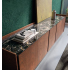 Puede elegirse con zócalo para una presencia más sólida o sin él, permitiendo su colocación suspendida en pared, una opción muy valorada por la ligereza visual que aporta al conjunto.