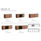 Este mueble TV está disponible en siete medidas estándar, con posibilidad de fabricación a medida, lo que permite adaptarlo con precisión a cada salón comedor y a las necesidades reales de almacenamiento.