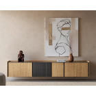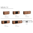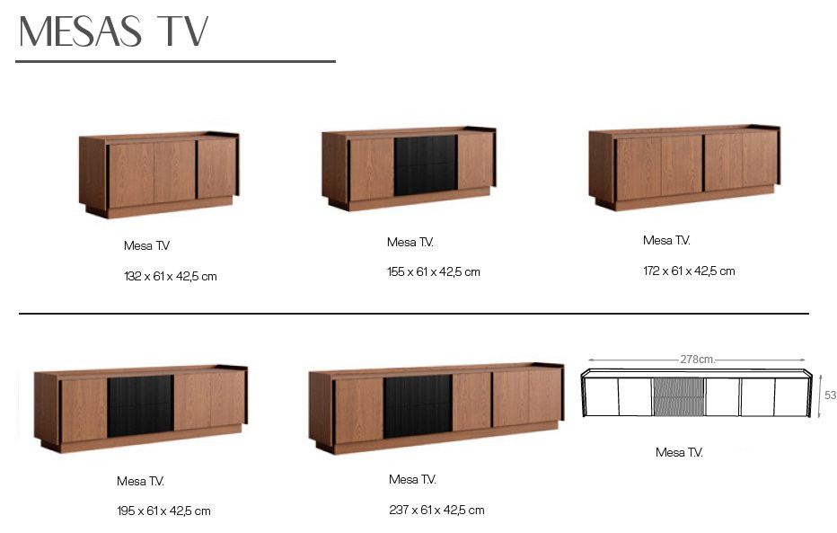 Este mueble TV está disponible en seis medidas estándar, con posibilidad de fabricación a medida, lo que permite adaptarlo con precisión a cada salón comedor y a las necesidades reales de almacenamiento.
