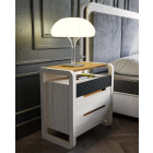 - Dispone de un estante superior abierto bajo una tapa, optimizando la funcionalidad para el almacenamiento de objetos de uso frecuente en el entorno del dormitorio principal.