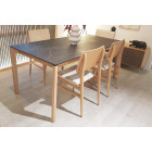 Mesa de comedor de diseño nórdico que combina a la perfección la belleza natural de la madera con la textura y firmeza del material porcelánico.