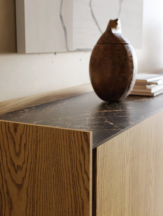 - Está fabricado en chapa natural de madera de fresno, seleccionada por su resistencia y belleza, con acabados cuidados que realzan la veta y transmiten calidad artesanal.