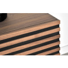 - Mueble aparador ideal para salones con mobiliario estilo nórdico industrial moderno, fabricado con las puertas en madera de roble con hendiduras horizontales en negro y con la estructura del mueble en DM con chapa de madera de roble natural.