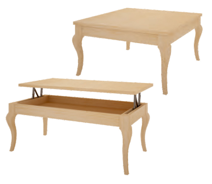 - MESA DE CENTRO PATA ISABELINA Y CON LA TAPA ELEVABLE MADERA - PINO