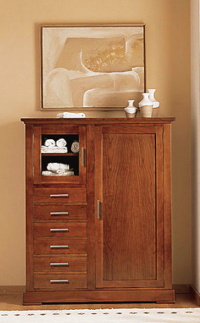 Armario con sinfonier de 6 cajones y realizado en madera de cerezo. Medias: 116x43x140 cm. También se realiza a medida. Para habitaciones de matrimonio y dormitorios juveniles.